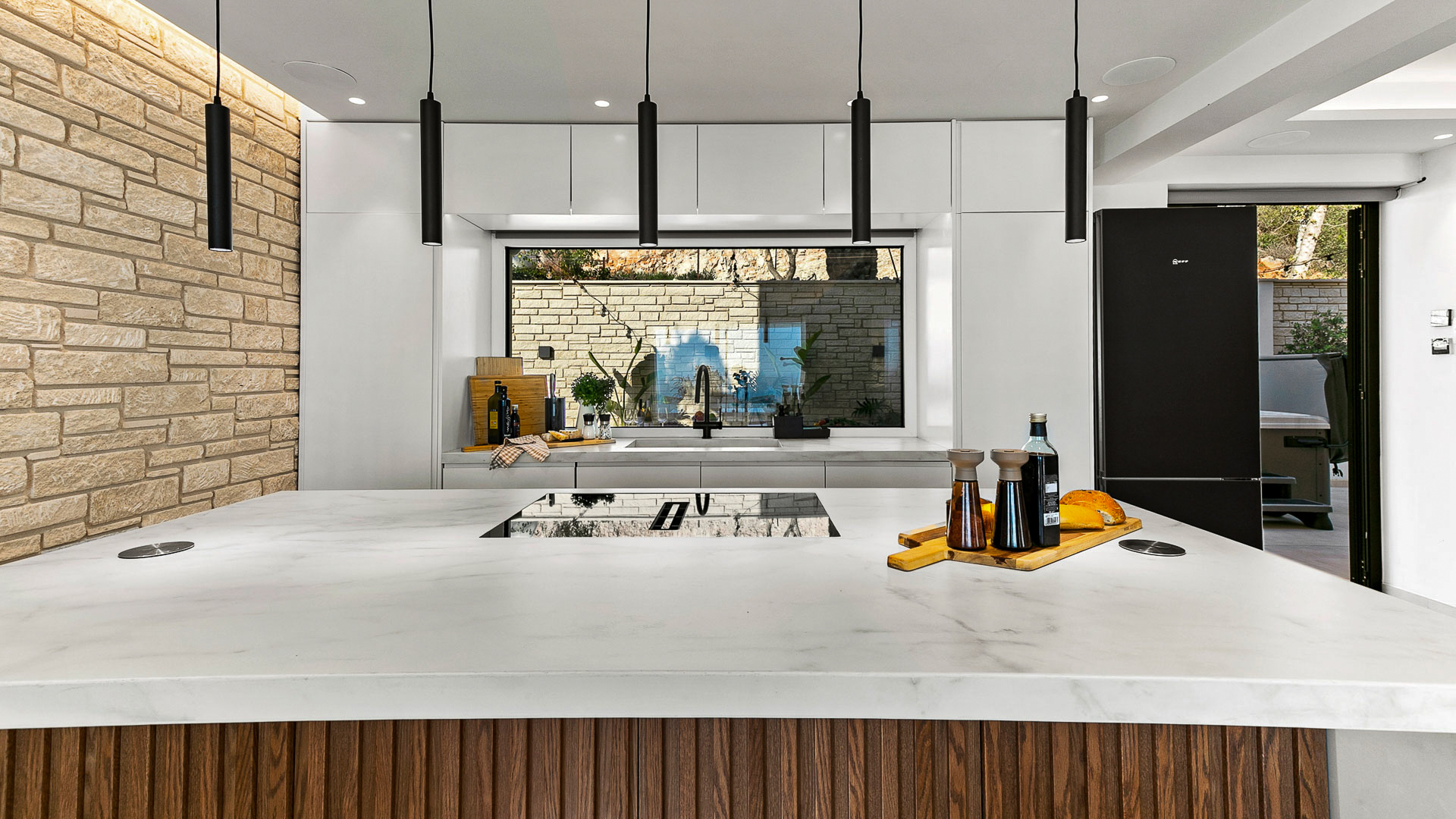 - Fully equipped outdoor kitchen and bar with stunning views